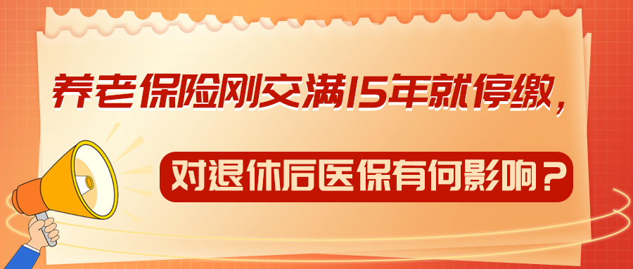 养老保险刚交满15年就停缴,对退休后医保有何影响?